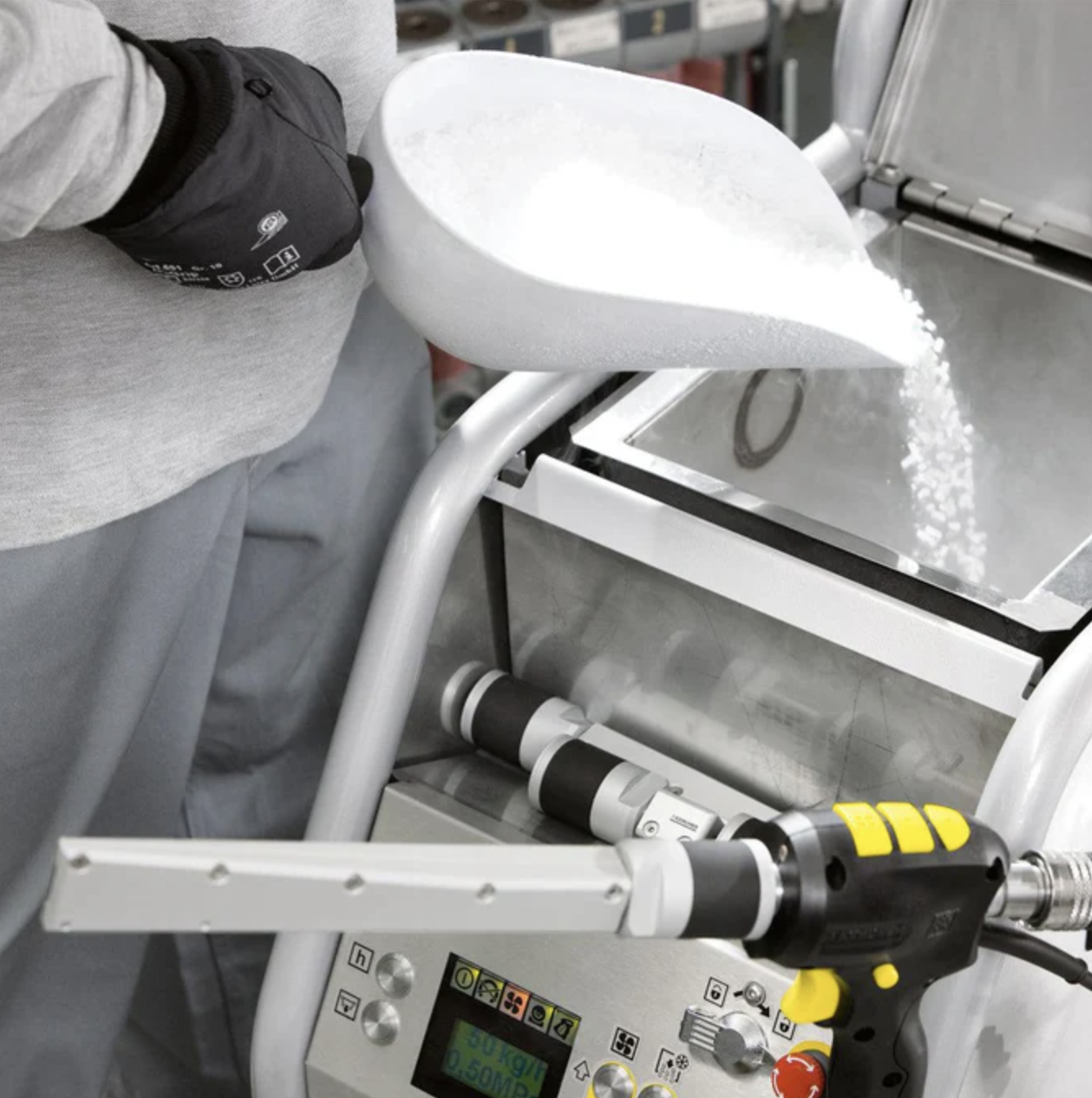 Loading: Dry ice pellets are loaded into the blasting machine.